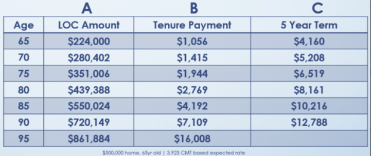 What follows just below is a chart showing a client, now age 65, living in a $500,000 home and converting it into a $224,000 GROWING line of credit. Notice how easy it becomes to overcome the Four Dangers listed above.